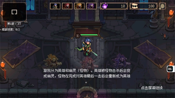 游戏里有英雄和幽灵两种身份。英雄若被怪物击败,就会转变为幽灵;而怪物在对英雄造成终结一击后,会重新变回英雄。
