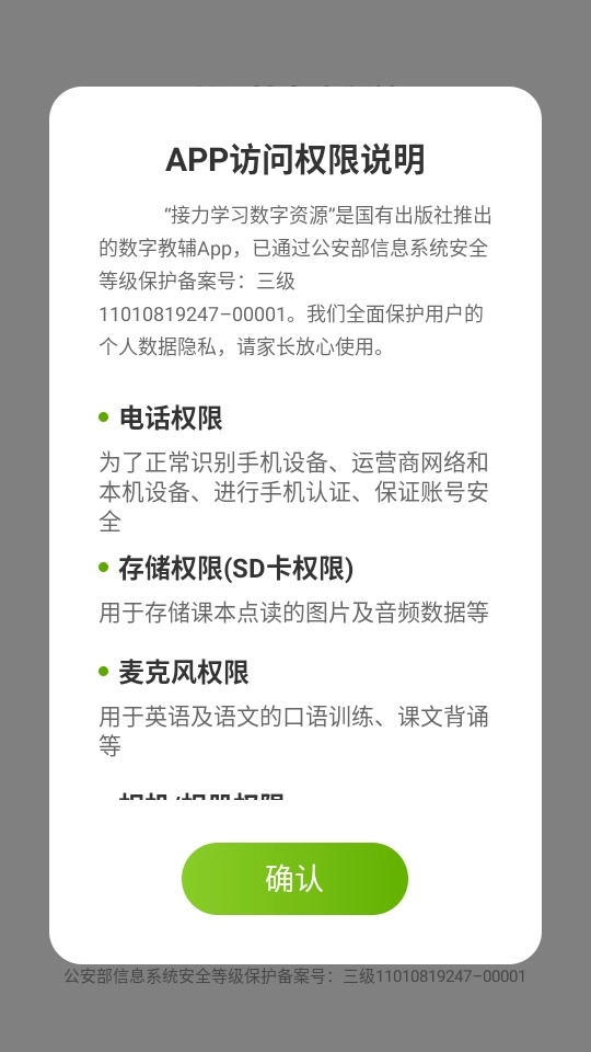 之后就能查看应用的访问权限说明,点击“确认”按钮进入下一步操作。