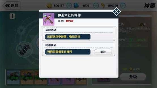升级神器时,需消耗金币和对应神器的碎片。在日常玩法里,这些所需道具可通过参与运营活动、在武道商店兑换等方式获取。