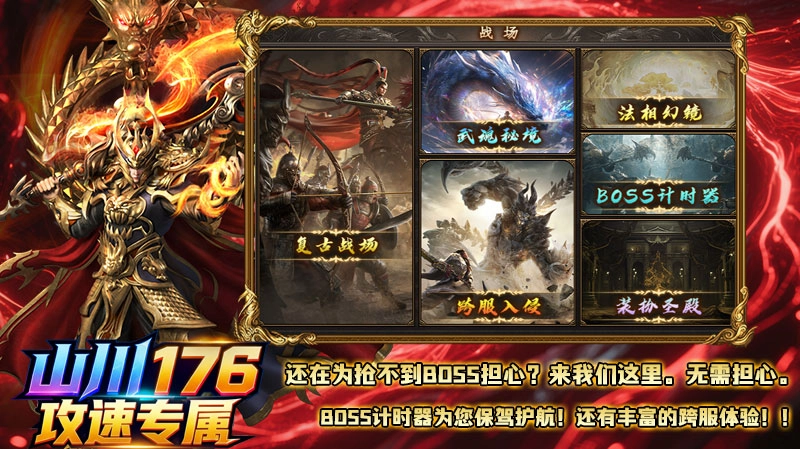山川176攻速专属游戏是山川科技开发的特色六职业传奇游戏,玩家可领取各大陆礼包,无需氪金,通过打boss免费获取。打怪体验爽快,还能与真人玩家PK,毫无套路,轻松爆出游戏货币,在线即送各类礼包。游戏内设有武魂、时装、翅膀等特色系统,助你打造酷炫造型;各类装备可自由探索,通过挑战boss掉落获取,玩法简单自由。