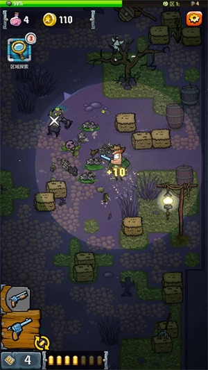 通过滑动屏幕操控角色移动,当角色遭遇僵尸时会自动开枪发起攻击。