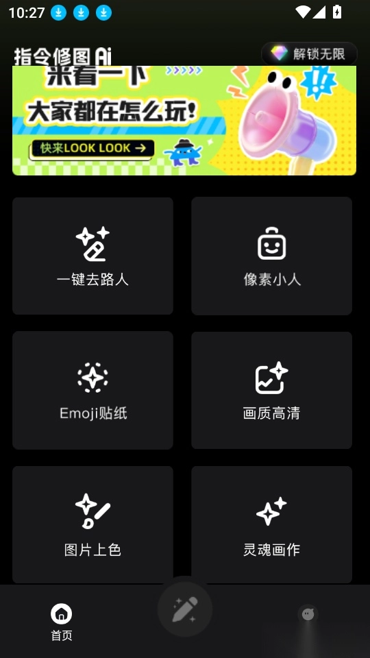 进入软件的修图界面后,在底部菜单栏里点击“首页”按钮,以便开展后续操作。
