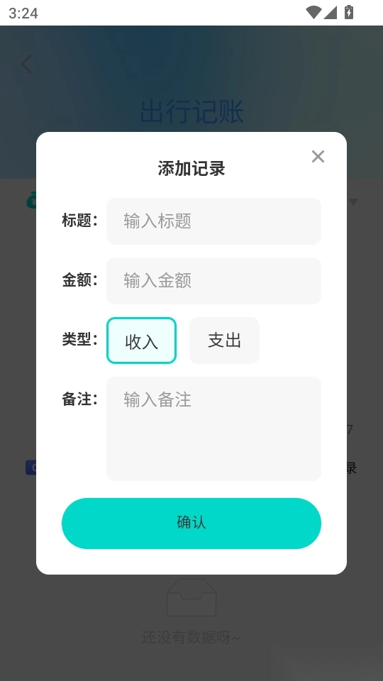 用户填写好标题、金额、类型和备注后,点击“确定”按钮即可完成操作。
