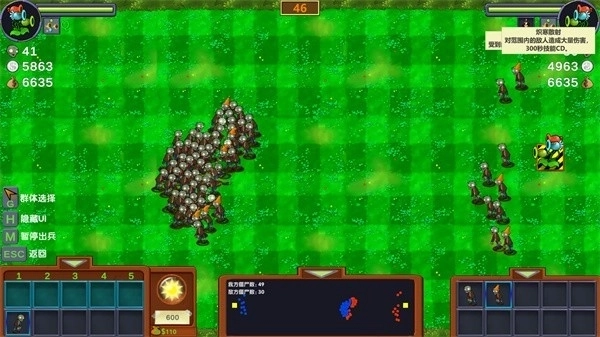 游戏开始后,顶部的倒计时结束时,系统会自动给敌我双方分配资源,包括人数和资金。你可以依据我方现有的资源,挑选合适的僵尸派出去;也能暂停或恢复我方僵尸的出动。每派出一个僵尸,都会从当前资金(就是带有硬币标记的那栏)里扣除该僵尸所需的费用。要是当前资金不够,或者可出动的僵尸人头数为0,就没法派出僵尸了。不同关卡的资源都有各自的上限。