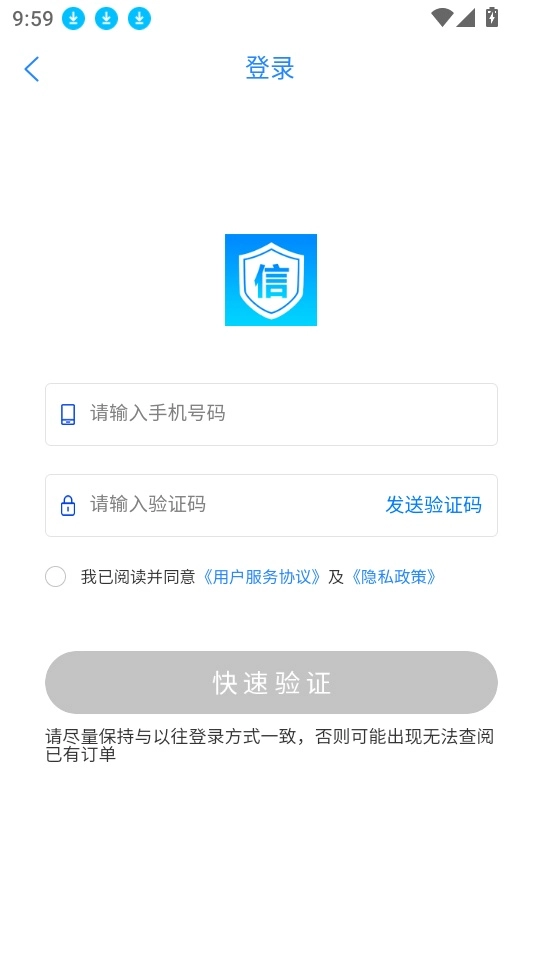 在软件的登录界面就能输入手机号与验证码,点击“快速验证”按钮即可一键登录。