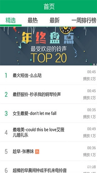 最爱的铃声:每日、每周、每月都能看到你喜欢的铃声。