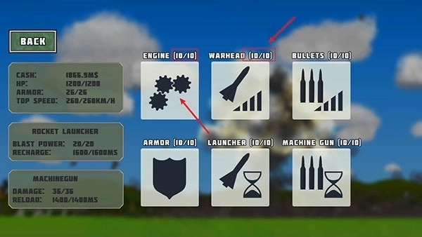 购买成功后,点击【BUYUPGRADES】即可对武器进行升级
