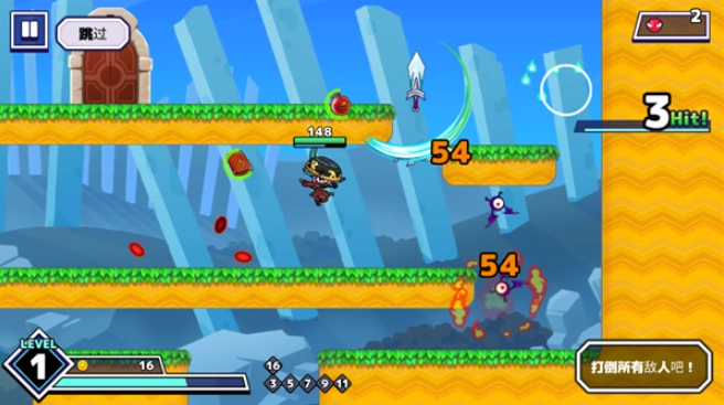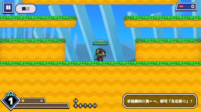 武士X十刀流和不少采用虚拟摇杆的平台跳跃游戏不一样,它运用了一套独特的滑屏移动操作方式,无论是角色移动、跳跃,还是加速下降,都得依靠滑屏来完成,这种设计相当新颖。