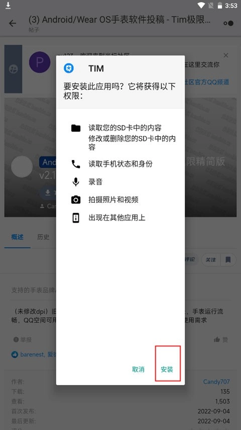 带安装包完成后,页面会弹出安装提示,点击安装。