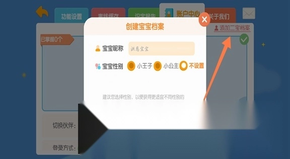 在页面右上角找到“添加二宝档案”选项,点击进入后填写相关信息,就能完成设置。