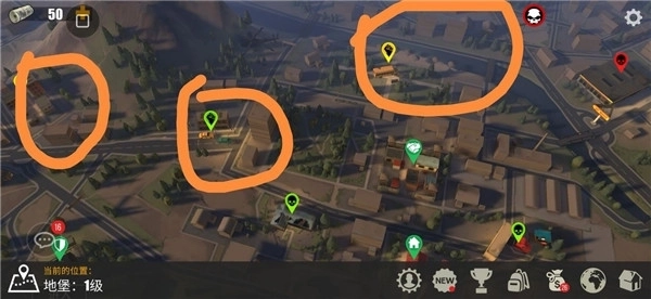 单机地图由于刷新时间的限制,会制约基础材料的获取,而前期萌新对基础物资的需求又比较大,因此前往公园(可获取木头、石头)和城市(可获取铁屑)这类基础资源密集且丰富的联机图(地图上带有拳头图标的即为联机图)就显得十分必要。不过联机图里经常会有装备较好的玩家抓人或打架,萌新的装备水平很容易导致死亡,所以前期刷资源的首选还是卡单机。