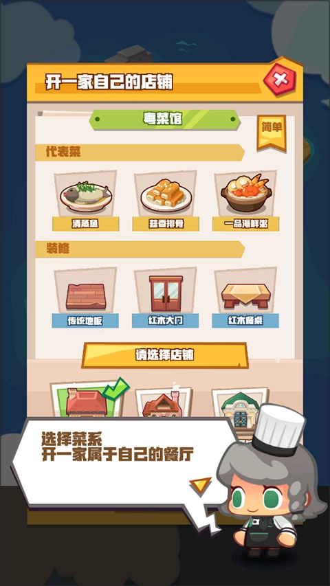 游戏开启时,玩家得先开设一家属于自己的餐厅,并且能够挑选符合自身喜好的餐厅风格以及菜系。