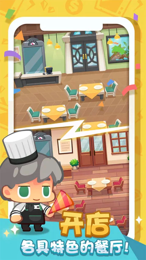 在《疯狂中餐厅》里,玩家能和其他伙伴结交友谊、畅快交流,彼此分享经营餐厅的心得与游戏中的各种体验。游戏的社交玩法不仅让互动性变得更强,还能让大家互相学习、一起成长。 游戏凭借着精致又可爱的画面设计,牢牢抓住了玩家的注意力,让人玩起来就停不下来。这种萌萌的视觉风格,把玩家带入了一个满是欢乐的游戏世界,让大家能尽情享受其中的乐趣。 而在玩法上,玩家可以体验到真实又细致的餐厅经营过程,从设计菜单到为顾客提供服务,每一个环节都藏着满满的趣味。