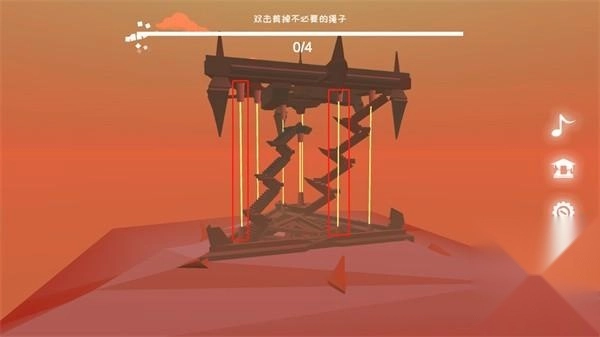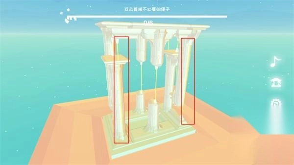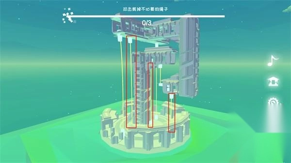 第三关需要剪断六根绳子,玩家得先把四个角的绳子剪断。
