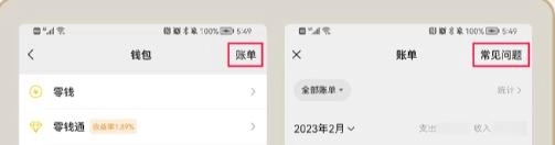 你可以这样操作:先点击页面右上角的账单选项,待账单列表完全加载出来后,再点击右上角的常见问题按钮。