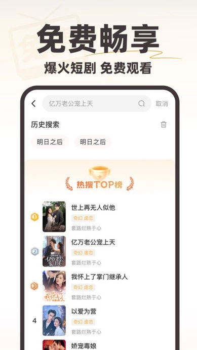 免费短剧疯看是一款很受欢迎的免费追剧观影应用,它具备强大又智能的搜索功能,用户既能直接输入短剧名称查找各类精彩短剧资源,也能通过它实时记录自己的追剧观影历史与进度,方便下次无缝续播,全方位满足追剧需求。此外,它还汇聚了各大热门短剧平台的经典内容,支持用户自由筛选,轻松获取高人气短剧,畅享优质的追剧体验与乐趣;同时,用户也能便捷查看各类短剧榜单,随时获取最新的短剧资源。