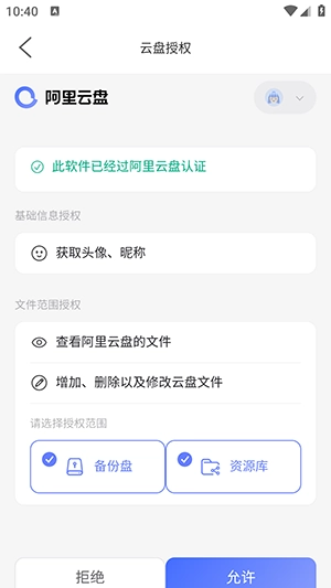 阿里云盘的认证授权流程很简单,你只需放心点击“允许”按钮,就能完成登录授权啦。