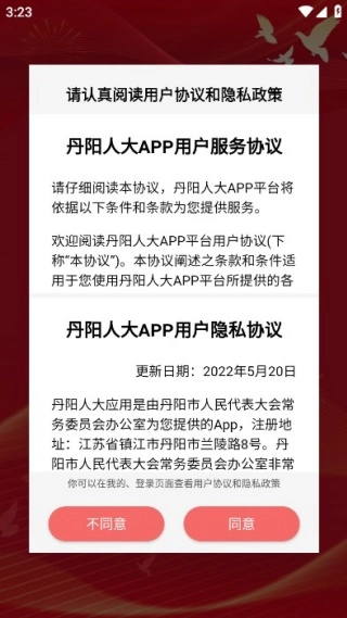 需要认真阅读用户服务协议,点击同意才可以继续。