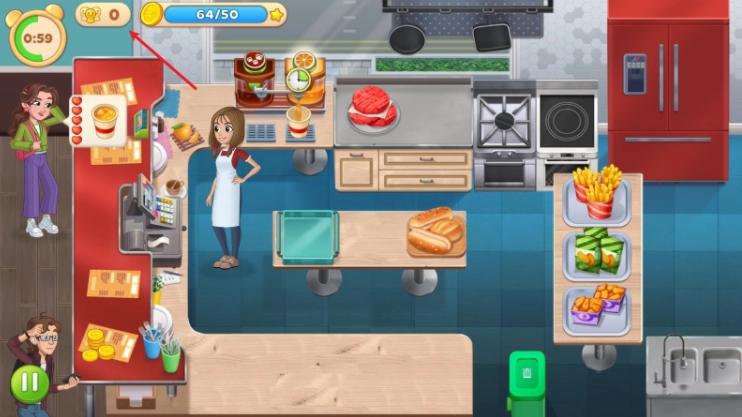 制作完成后点击就能拿到手里,接着点击客人的菜单提交,就能获得相应的奖励。