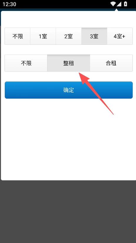 挑选合适的房型与租赁方式,点击确认按钮,即可完成租房条件的设置。