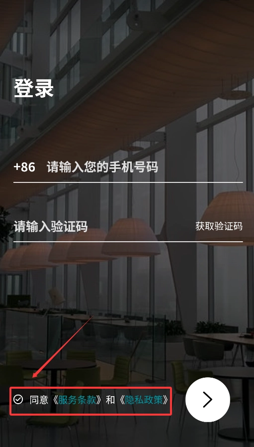 必须勾选同意服务协议与隐私政策,才能进行下一步操作。
