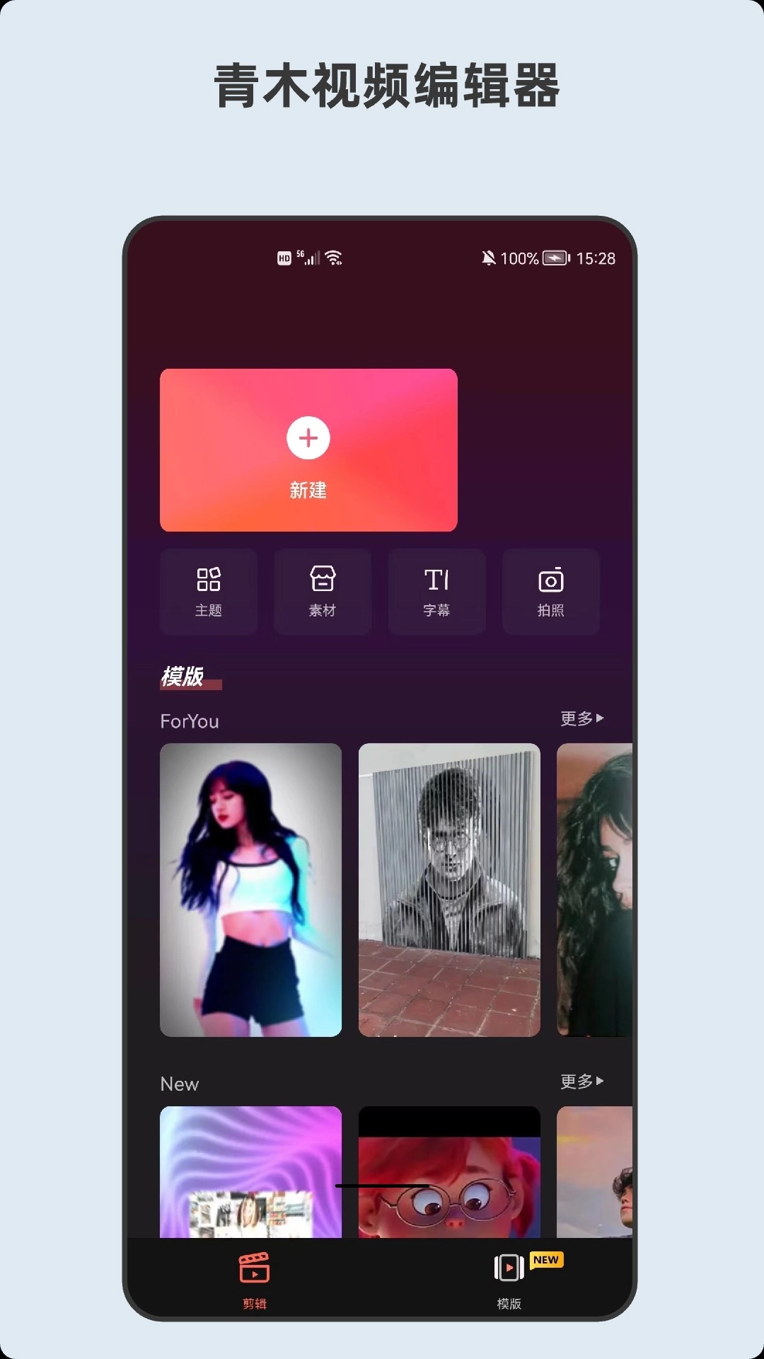 《青木视频编辑器》是一款能让您按需轻松修改短视频资源的实用工具,丰富多样的模板、美化素材与背景音乐资源,支持随时在线添加使用;同时具备多样化功能,多种编辑方式可免费使用,操作便捷,能有效提升您的编辑体验,整体使用简单又实用。