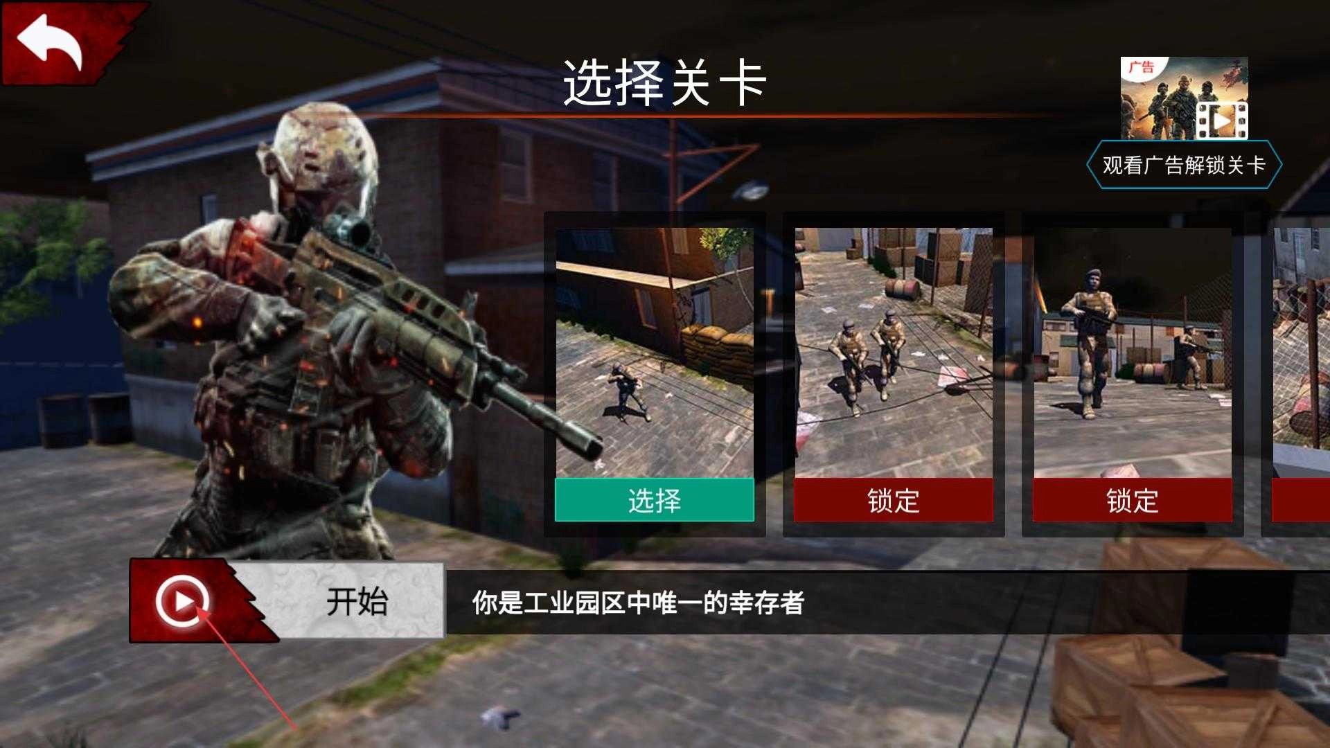 在关卡选择界面,能看到多个关卡选项,其中第1个关卡可选择,其他关卡显示锁定状态,点击第1个关卡进入目标提示界面。