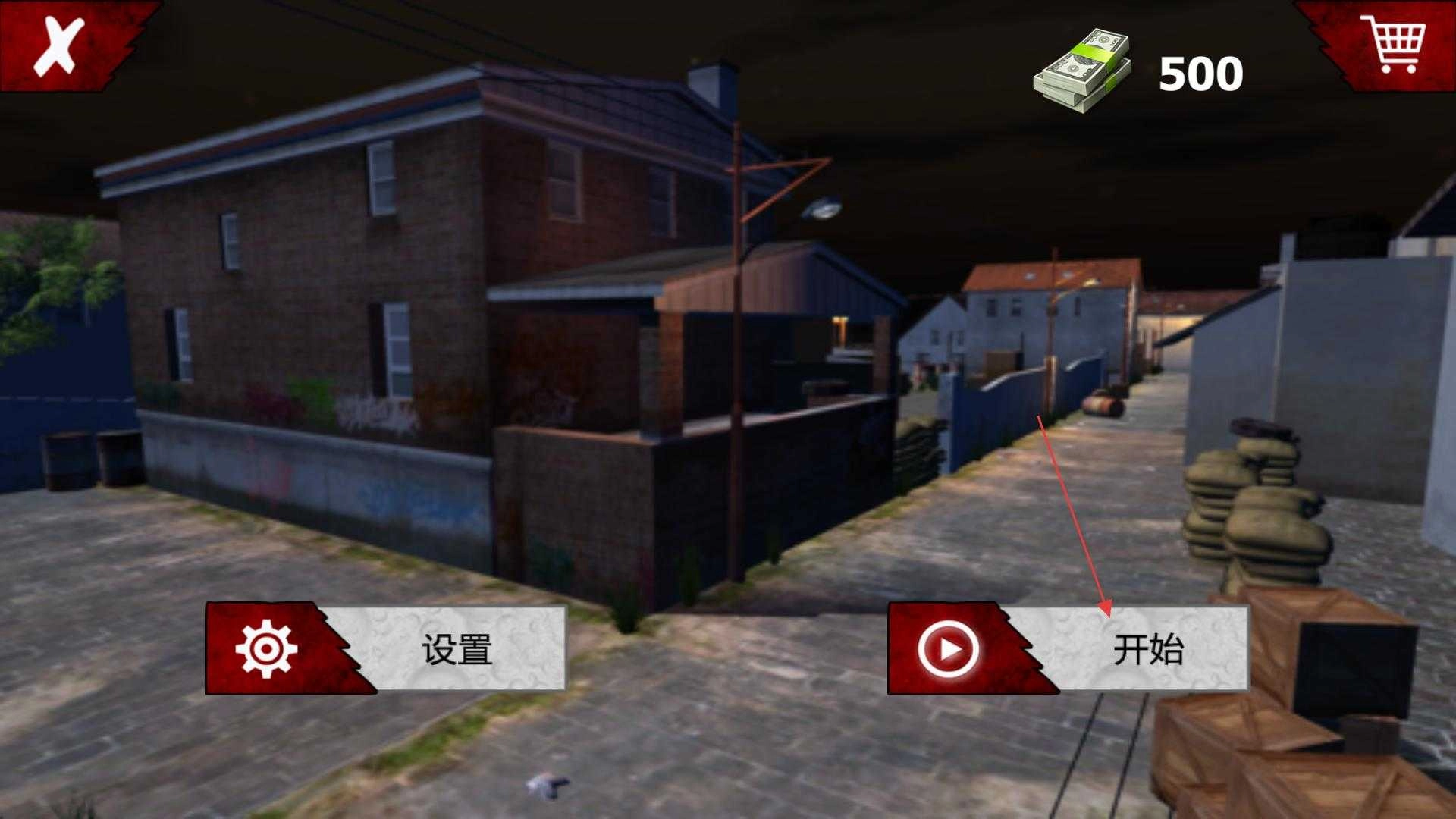 打开游戏后进入主界面,这里能看到设置、开始等功能按钮,还有金钱数量的显示区域,点击“开始”按钮即可进入关卡选择界面。
