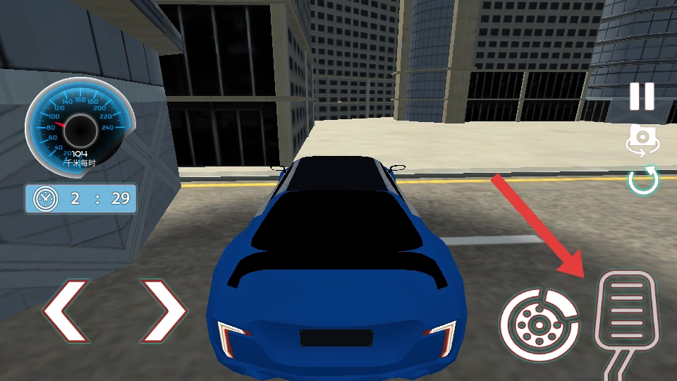 1. 开启游戏后,通过左下角的左右箭头操控蓝色赛车的行驶方向,对准绿色光圈标记的目标点,接着点击右侧的油门实现加速。