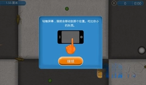轻触屏幕,猫咪便会朝该位置移动,吞食体型比它小的物体,像蟑螂和豌豆这类。