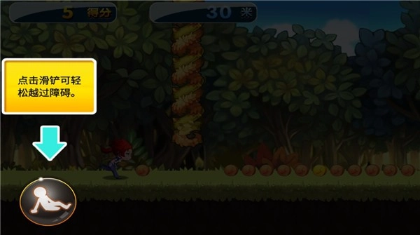 点击左下方的“滑铲”,可以滑铲越过障碍。
