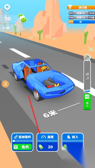 1. 组装与升级:点击“添加零件”“速度”“收入”选项,消耗金币来升级部件、提升速度以及增加收益,从而完善赛车。