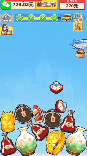 多财人生采用常见的物品合成玩法,通过持续将两个相同等级的物品进行合成,就能快速获取红包;当合成次数达到一定数量时,还能提升兑换比例,后续更可解锁自动合成功能,无需手动操作也能享受福利。