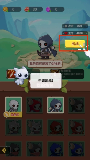接下来,你就能操控你的骷髅了,点击上方方框里的“出战”按钮,开启你的冒险旅程吧。