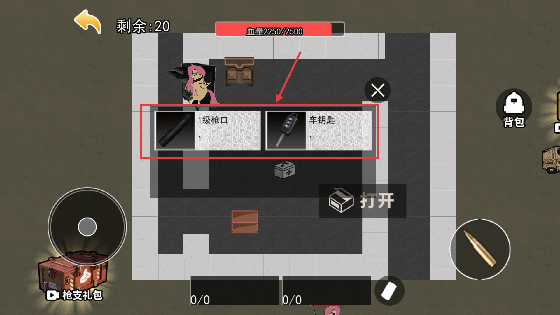 开启宝箱可获取【1级枪口-车钥匙】等道具,通过装备配件能够提升枪械性能,解锁载具还能助力战斗。