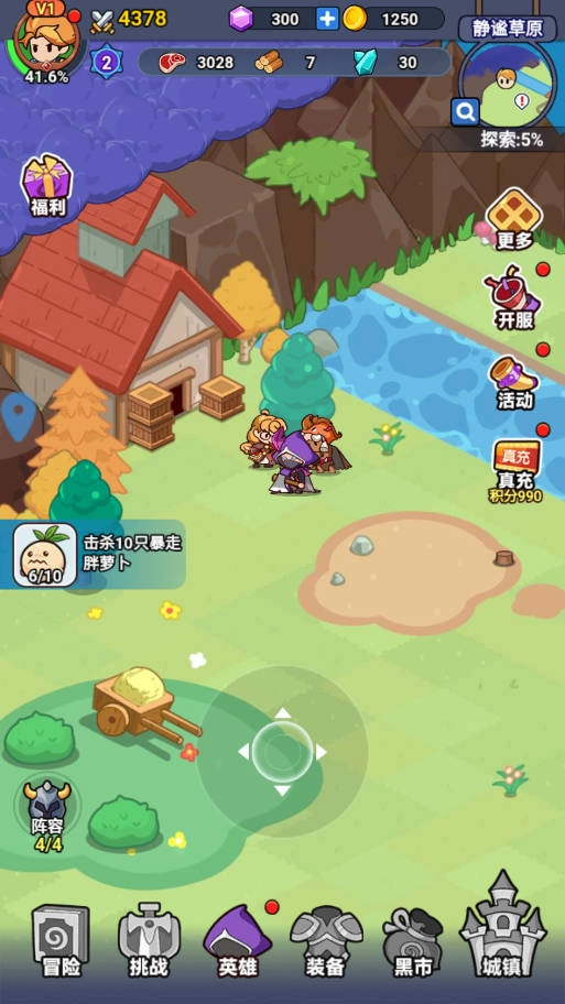 游戏中的基础资源包含木材、矿石、肉块和金币这几种。其中,肉块需要通过击杀怪物来获取,木材可以在大地图里砍伐树木得到,矿石则要通过挖矿玩法来获得,这些资源的数量在界面左上角就能看到;而金币作为游戏里的常规货币,主要用于购买英雄。
