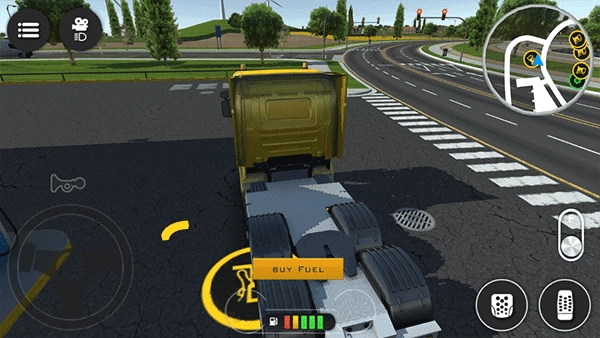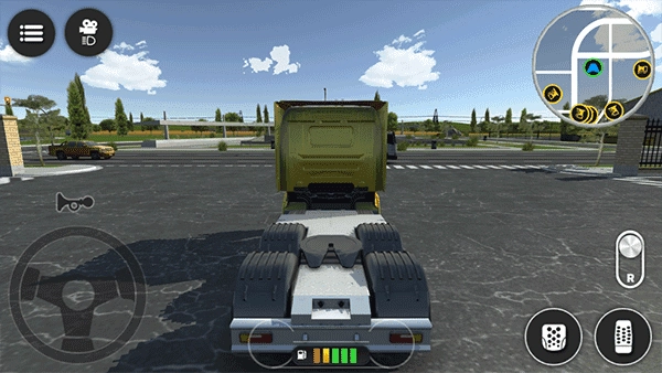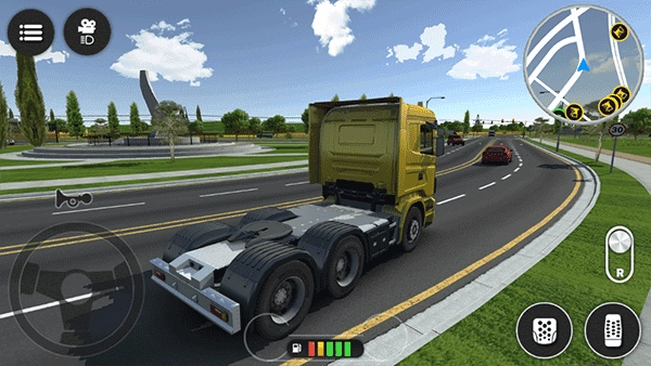操作简洁直观:左侧虚拟方向盘控制方向,右侧油门、刹车、倒挡一键掌控,滑动屏幕可自由切换视角。