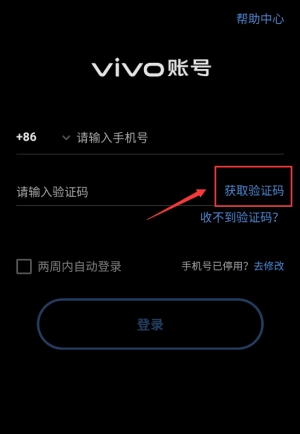 2. 点击红框中的“获取验证码”按钮,随后等待接收短信。