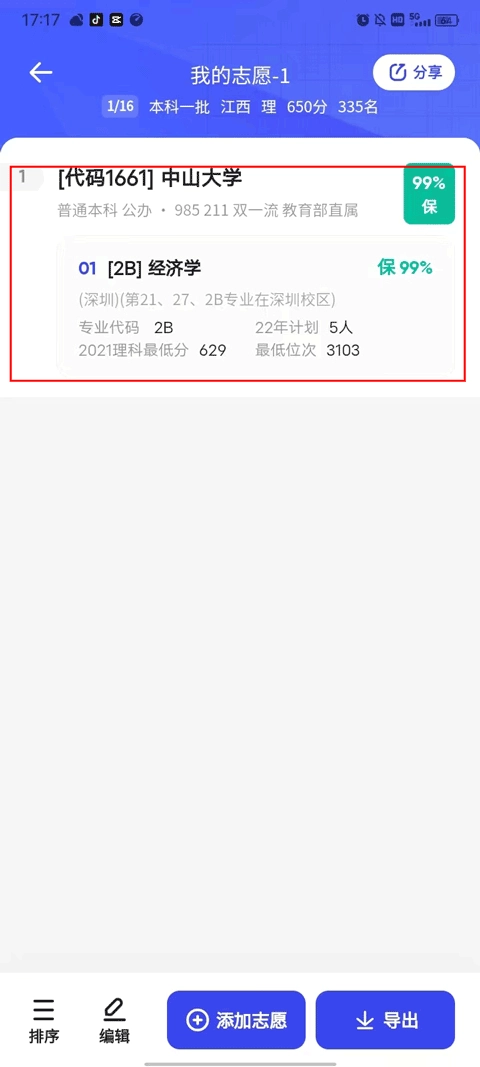 4、如此一来,你便能在我的志愿中看到你刚添加的志愿。