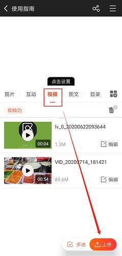 按钮 - 点击添加菜单(若已存在则可跳过此步骤) - 定位至视频菜单后点击“上传”。