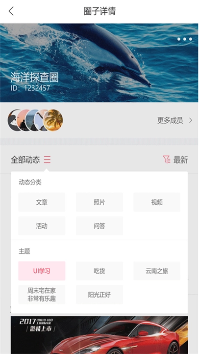 圈子创建与加入功能:其核心在于助力用户打造专属圈子,能够自行设定主题、简介以及标签,以此吸引志同道合的人群加入。与此同时,还配备圈子搜索与推荐功能,借助该功能,用户能够依据自身兴趣,寻觅并加入像“二次元”“拾柒宠物”这类心仪的圈子,从而实现社交圈的拓展。