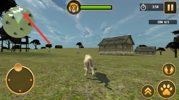 1. 需留意左上角雷达,定位任务目标为捕获3头COW,利用左侧摇杆控制狮子移动,前往目标所在区域。