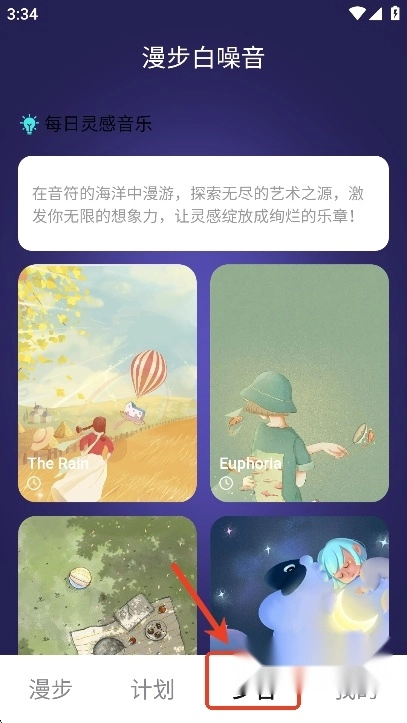 放松辅助功能: 1. **漫步白噪音**:为漫步中的用户打造惬意的听觉氛围,助力其放松身心。 2. **每日灵感音乐推荐**:像《The Rain Euphoria》这类音乐,能在漫步过程中激发想象力,增添愉悦之感。