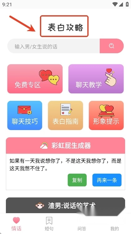 随后,用户们能够搜寻自己心仪的表白或恋爱话术。