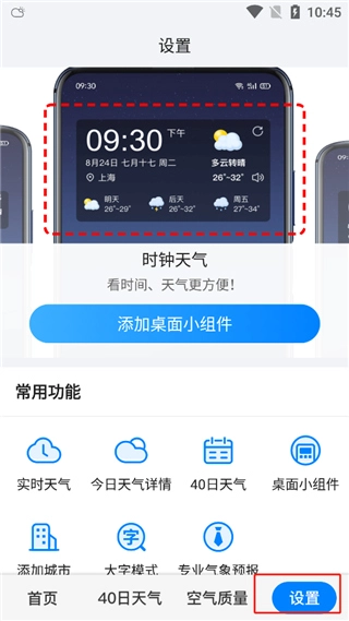 5、用户点击设置后,能够添加桌面组件以及一些常用功能。