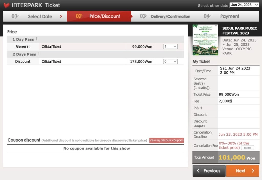 首先,若要购买韩国的票券,务必先确认你所进入的购票网站是韩国版页面还是国际版页面,这两者存在差异。