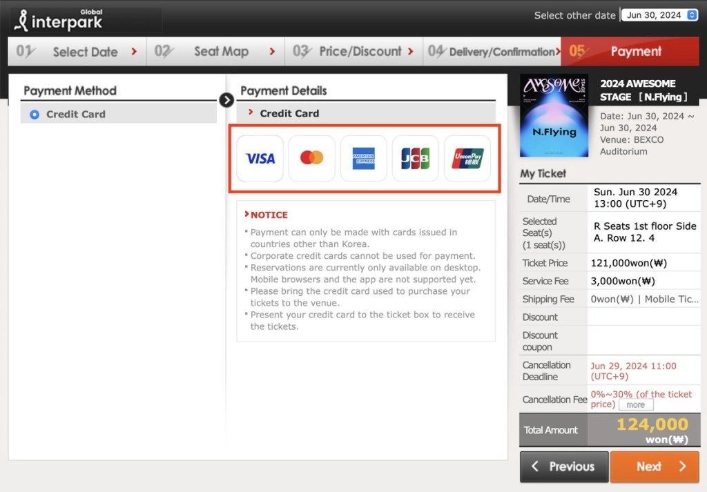 若在海外购票,由于通常没有韩国电话用于加入会员,因此必然会选择在国际网站注册。不过,购票的票券内容以及购买方式与其他情况并无差异。