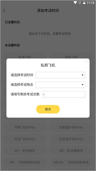 3、接着挑选对应的考试时间、地点以及次数,随后点击提交,这样就能完成添加。