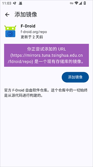 清华镜像站 F-Droid 仓库链接:https://mirrors.tuna.tsinghua.edu.cn/fdroid/repo/?fingerprint=43238D512C1E5EB2D6569F4A3AFBF5523418B82E0A3ED1552770ABB9A9C9CCAB