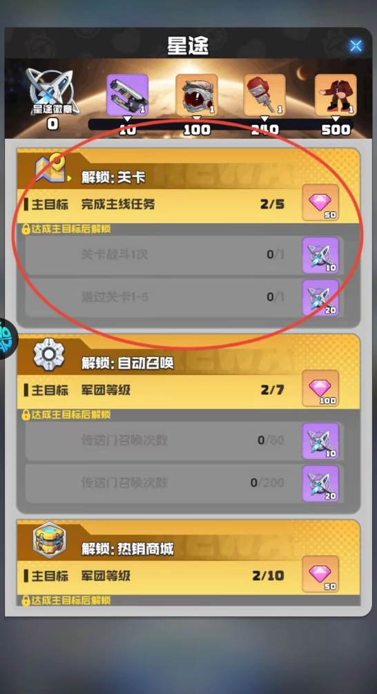 1. 首次进入游戏时,需完成新手教学任务。可通过星图界面查看当下能够接取的任务内容,只有完成这些任务,才能解锁相应关卡。